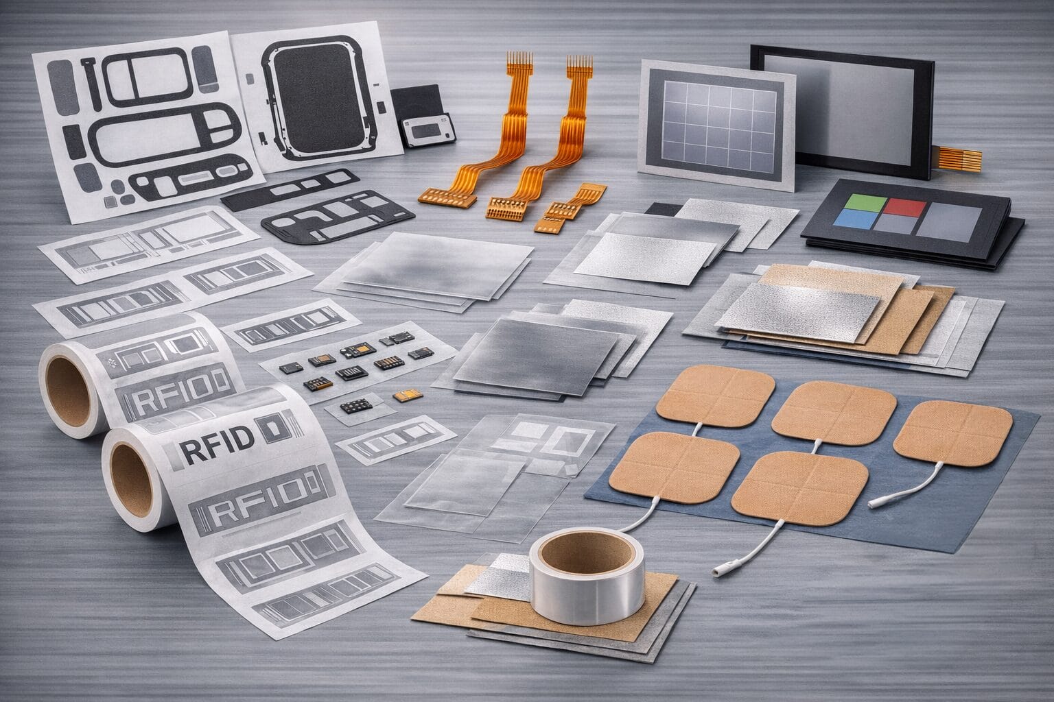 - Adhesive‑backed electronic assemblies